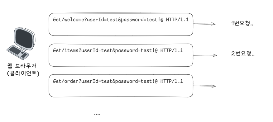 이로 인한 문제점은 로그인 예시에서, 사용자가 /login 요청으로 아이디, 비밀번호를 보내 인증에 성공했더라고,