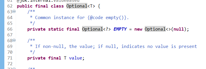보통 우리가 null을 건드리면 NullPointerException (널 포인터 에러)이 나죠? 하지만 Optional의 .get()을 썼을 때, 상자가 비어있으면 NoSuchElementException (요소가 없음 에러)이 납니다.