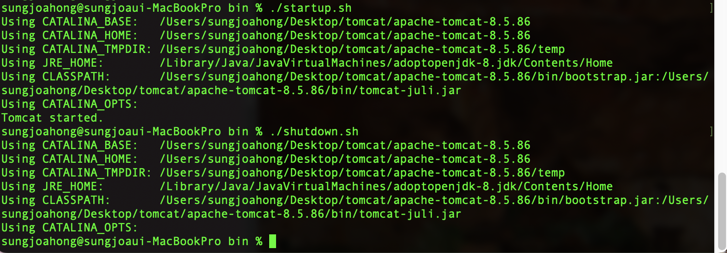 [MAC] tomcat 시작 및 종료