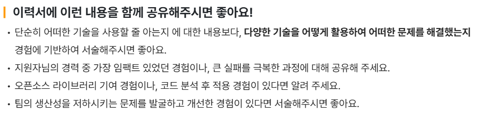 (아래는 실제 FE 공고에 쓰인 이력서 작성 가이드)