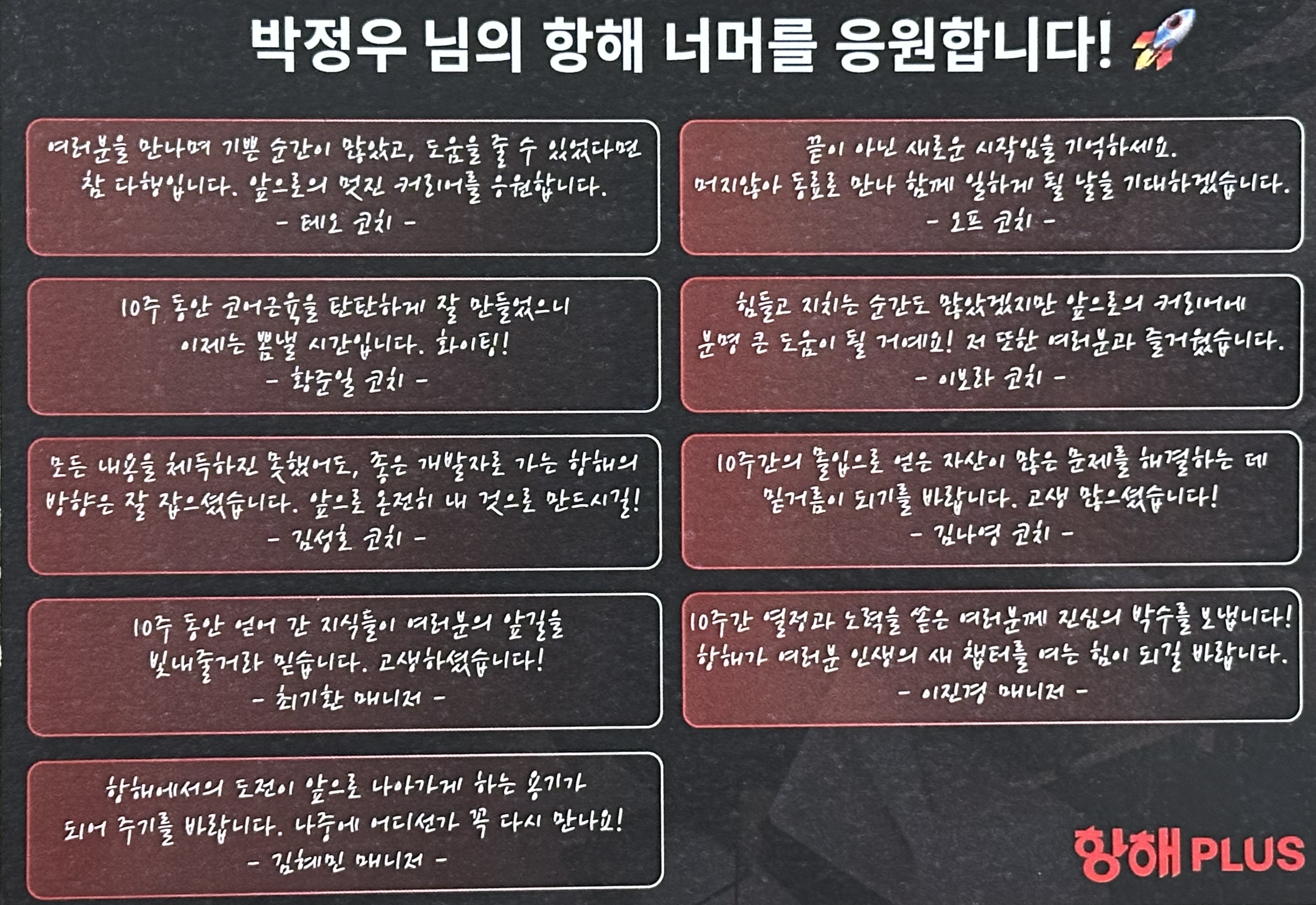 주변에 나와 비슷한 고민을 하는 사람이 있으면 항상 항해 플러스 코스를 추천하고 있다.