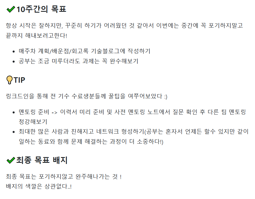 10주 동안 배운 것을 실무에 적용하여 온전히 내 것으로 만들어가려 한다!