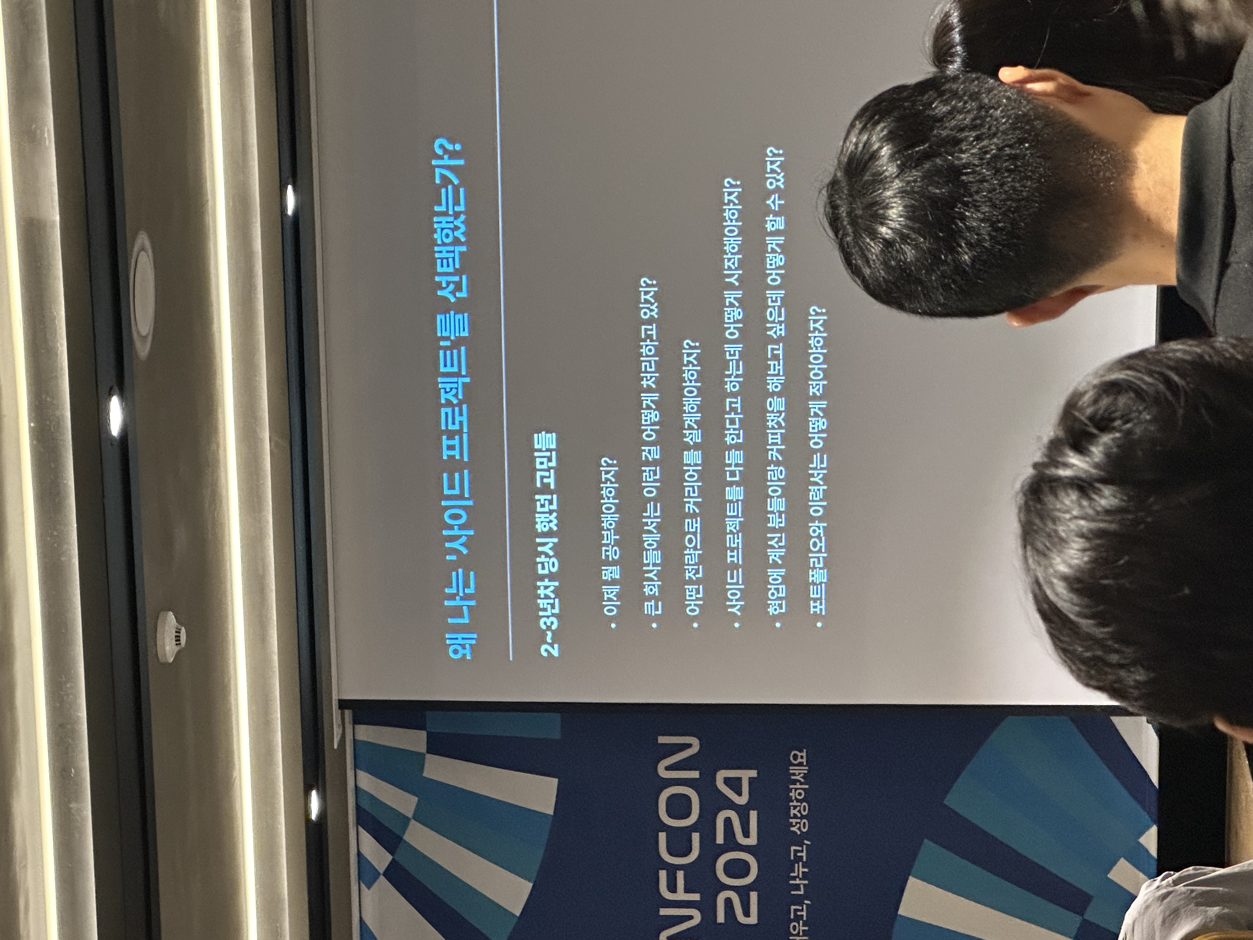 너무 뒤에 앉아서 화면이 잘 안보였지만.. 사이드 프로젝트 고민이 있었는데 단숨에 해결이 됐던 세션!
