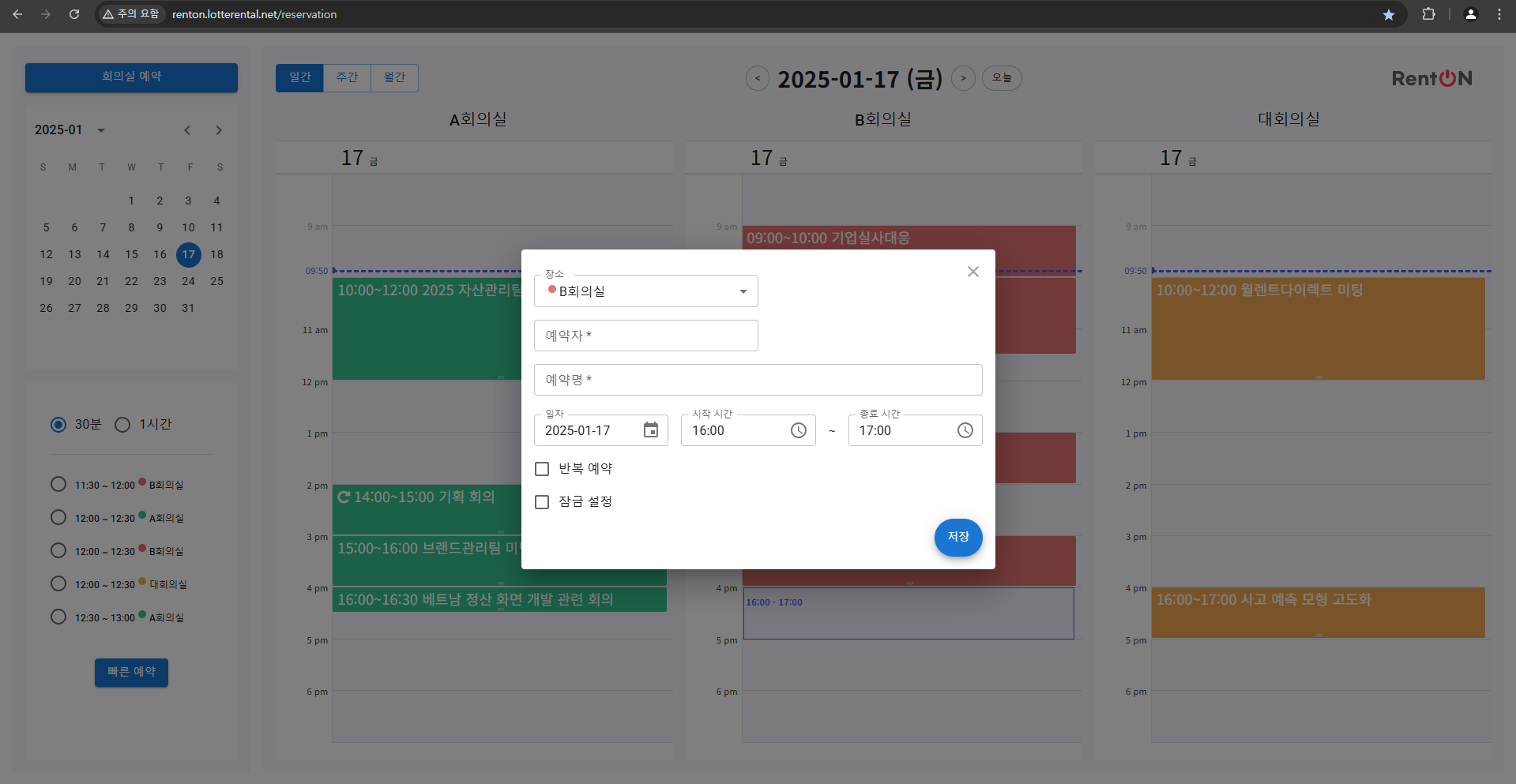 이번 프로젝트의 목표는 사내 회의실 예약 시스템의 UI/UX를 개선하여 더 직관적이고 효율적인 사용자 경험을 제공하는 것이다.