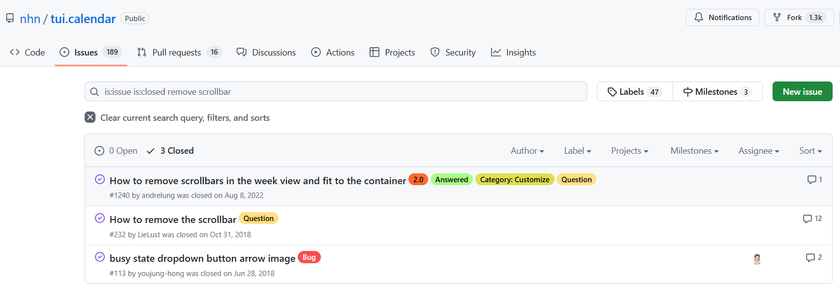 이번 프로젝트를 통해 TUI Calendar를 사용하면서 해당 오픈소스에 기여하고 싶다는 생각이 들었다. 특히, 사용 중 불편했던 스크롤 삭제 기능을 추가하고 싶었다. TUI Calendar GitHub를 방문해보니, 다른 개발자들도 이 기능을 원하고 있어, 스크롤 기능을 끄거나 추가할 수 있는 옵션을 property로 제공해보고자 했다.