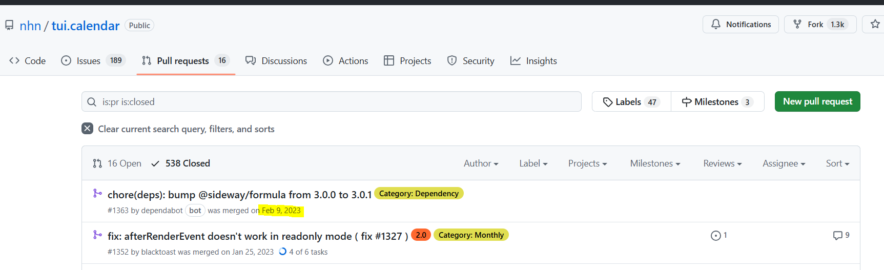 하지만 아쉽게도 해당 오픈소스는 Pull Request가 현재 활발히 유지되고 있지 않다. (마지막 merge된 부분이 2023년 2월이다..!😢)