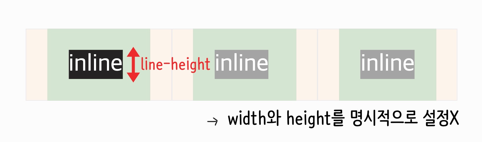 width와 height를 명시적으로 설정할 수 없으며, 요소의 크기는 주로 컨텐츠 와line-height에 의해 사이즈가 결정됩니다.