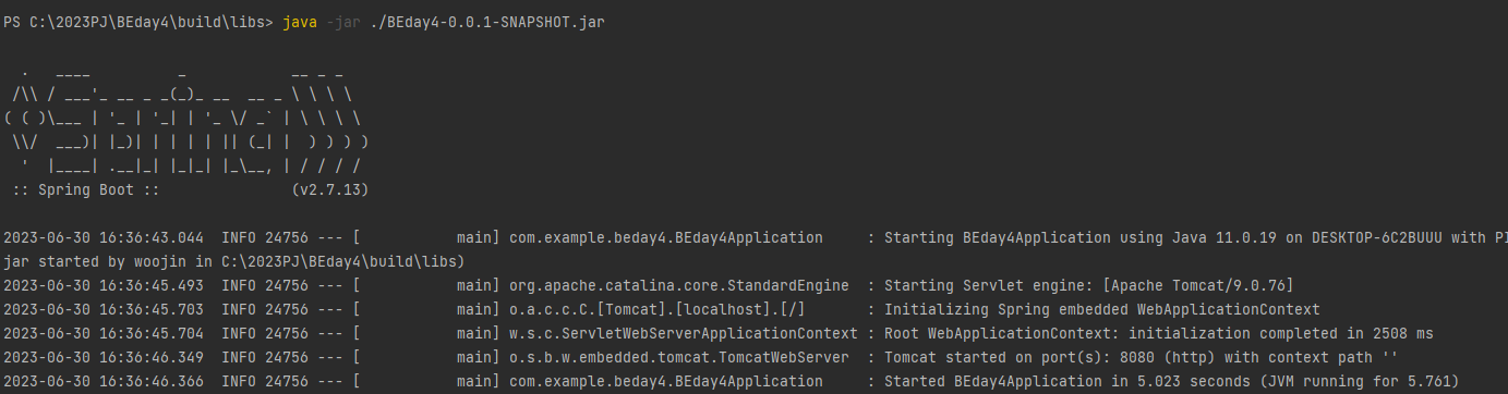 c. bootJar로 빌드하고 수동 실행하여 정상적인 서비스 동작 확인