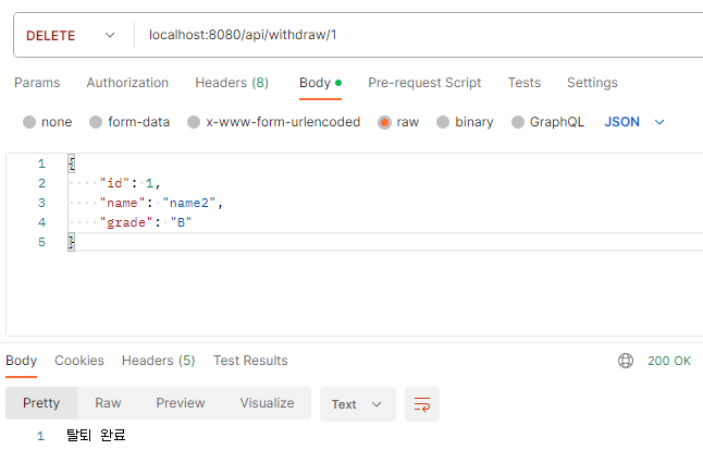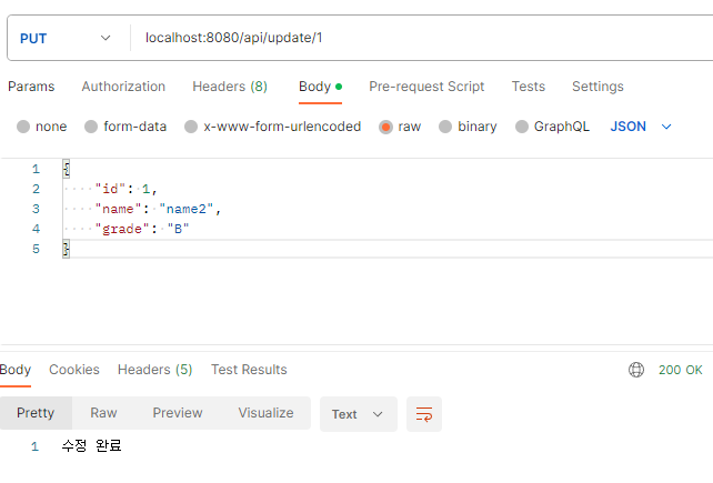 이하 위와 동일하게 Postman으로 테스트 진행 후 정상 동작 확인