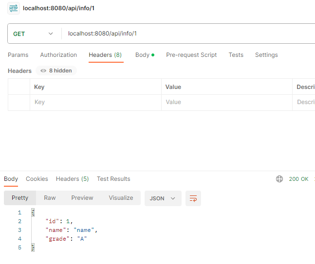 위 컨트롤러에 매핑된 주소로 api 테스트