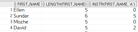 SELECT first_name, LENGTH(first_name), INSTR(first_name,'a')
