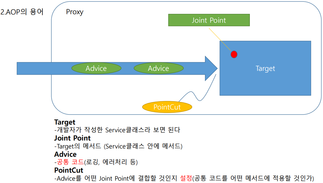 ProceedingJoinPoint는 AOP의 대상이 되는 Target이나 파라미터 등을 파악할 뿐만 아니라