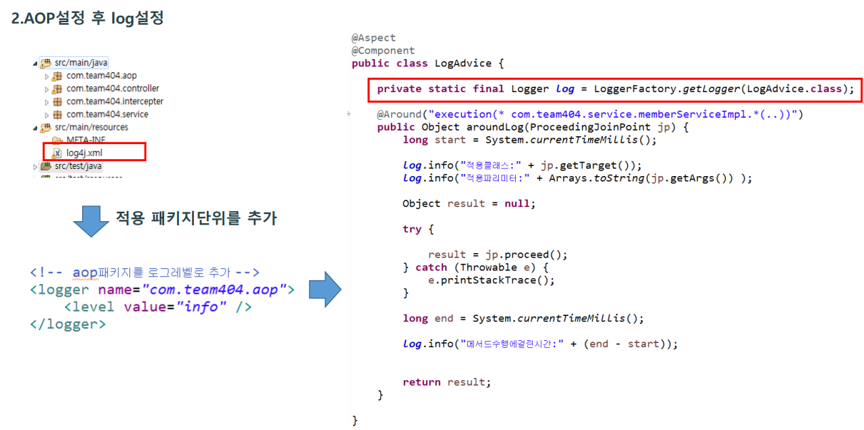 <!-- aop 패키지를 로그 레벨로 추가 -->