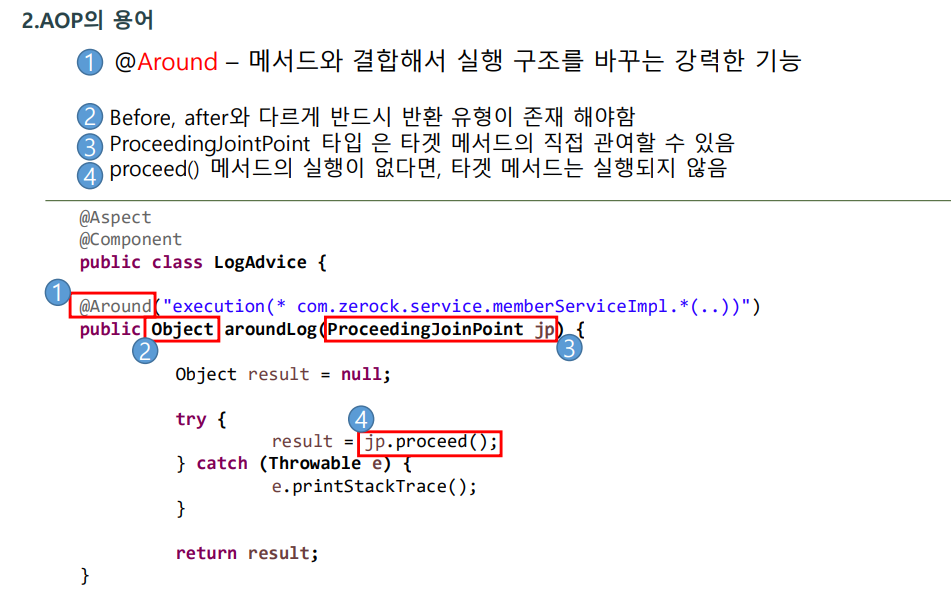 //proceed()의 결과를 반환해야 메서드의 정상 흐름으로 돌아갑니다.
