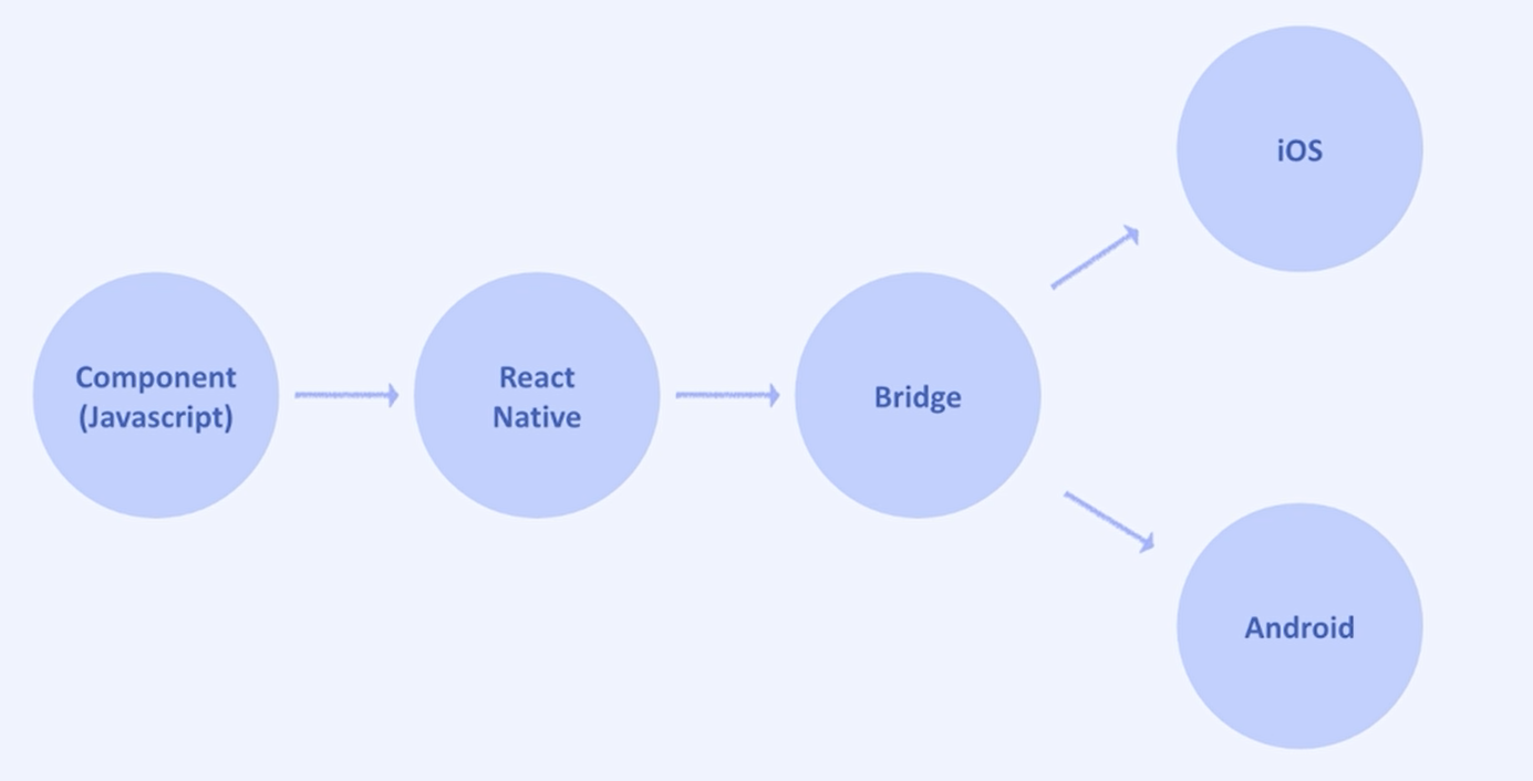 이러한 크로스 플랫폼이 가능한 이유는 JavaScript로 작성된 코드를 Bridge를 통해서 각 플랫폼에 맞는 Native UI 요소에 접근하는 인터페이스를 제공하여 Native 변환을 해주는 것이다.