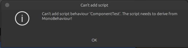 결과는 불가능했다. 왜 MonoBehaviour가 있어야만 부착 수 있게 되는지 알아본 결과 MonoBehaviour는 C++ 엔진 레벨에서 Attachable Script로 정의되어 있지만 Component는 그렇지 않았다.