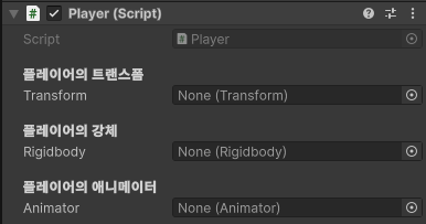 Space(float)은 인스펙터에 노출되는 필드들을 구분하기 쉽도록 공간을 분리하고 싶을 때 사용한다.float을 생략하면 기본 값으로 공간을 분리한다.