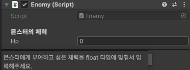 [Tooltip("몬스터에게 부여하고 싶은 체력을 float 타입에 맞춰서 입력해주세요.")]