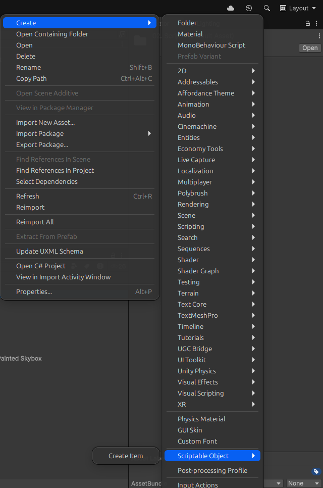 [CreateAssetMenu(fileName = "New Item", menuName = "Scriptable Object/Create Item")]