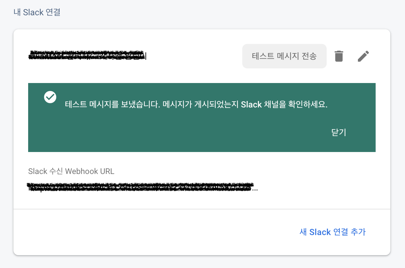 그리고 테스트 메시지를 전송해보면? Slack으로 메세지가 잘 날아오는 모습을 확인 할 수 있습니다.