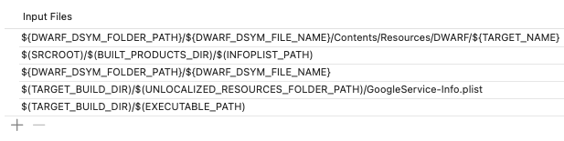 Shell(셸) 라벨아래에 있는 스크립트 필드에 dSYM 파일을 처리하고 파일을 Crashlytics에 업로드 하는 스크립트를 위와 같이 추가하고, Input Files(입력 파일) 섹션에서 파일 위치의 경로를 추가합니다.