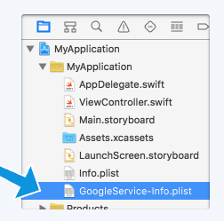 위에서 앱을 등록하며 다운로드 받은 GoogleService-Info.plist를 프로젝트의 목록에 추가합니다.