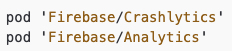 다음은 CocoaPods를 통해 Firebase의 SDK를 설치해줍니다. CocoaPods 말고 SPM(Swift Package Manager)을 통해 설치하는것도 가능합니다. 다만, 후술할 내용에서 일부 코드가 맞지 않을 수 있으니 이점 고려하여 사용하시면 됩니다.