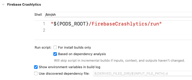 또 하나는 Crashlytics가 dSYM을 처리하기 위한 스크립트를 만듭니다.