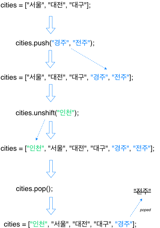 push는 array의 마지막 부분, unshift는 array의 맨 앞 부분에 요소를 추가한다.
