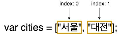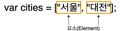"서울", "대전"과 같은 배열의 값 하나하나를 Element(요소)라고 부른다.