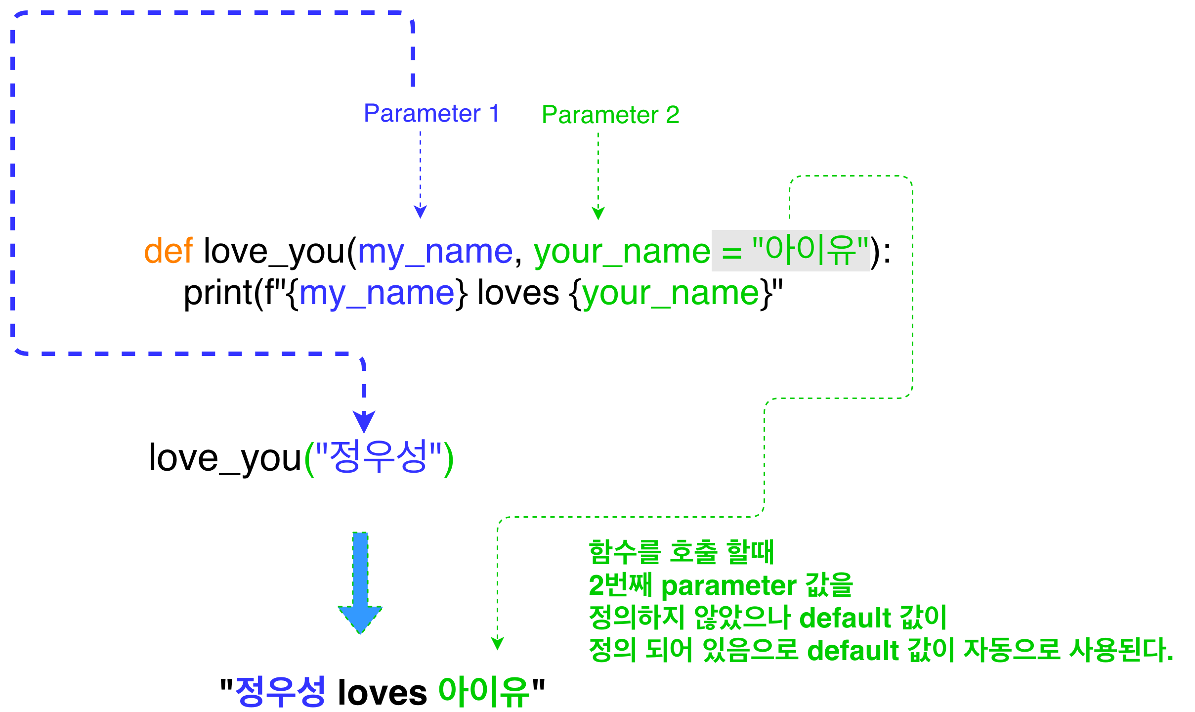 def love_you(my_name = "정우성", your_name):