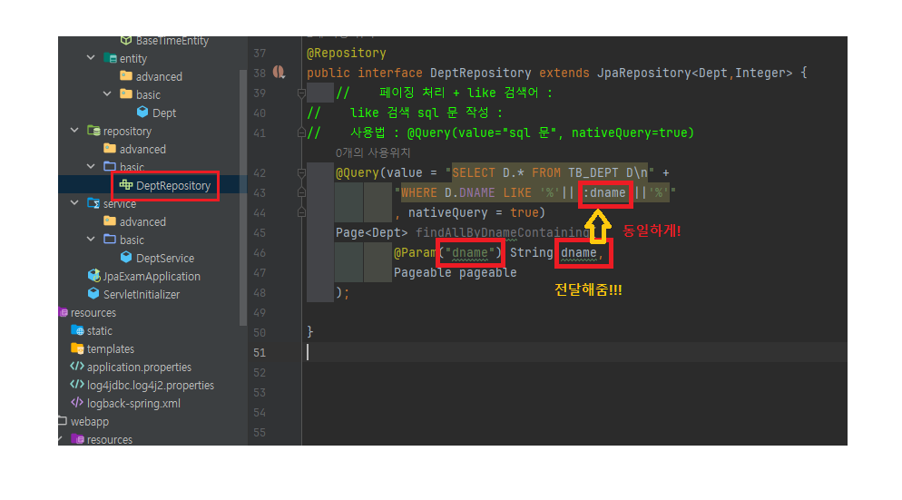 @Query(value="sql 문", nativeQuery=true)