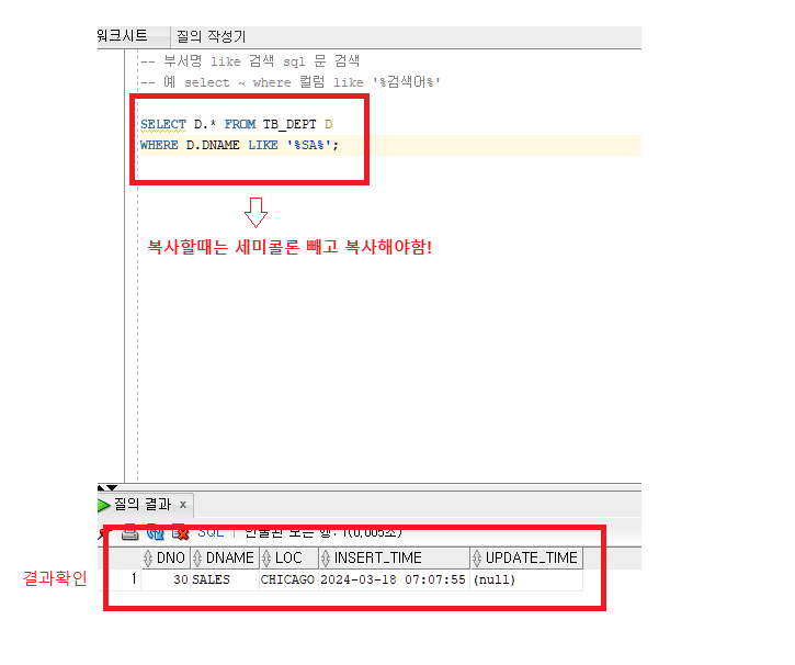 -> 복사할 때는 세미콜론 빼고 복사함!