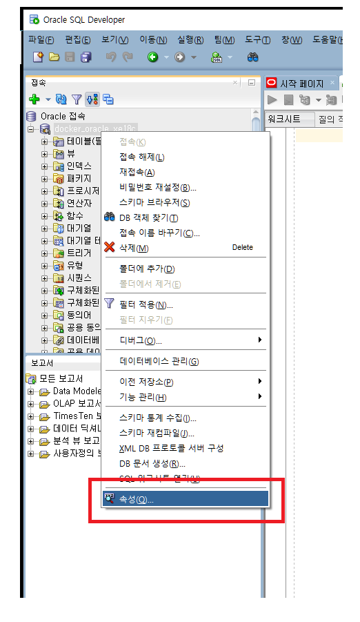 (1) 왼쪽창 접속정보 오른쪽 클릭 -> 속성 : 접속정보 창이 뜸