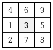 또한 위쪽 가운데 위치한 3x3 정사각형의 경우에는 3을 제외한 나머지 숫자들이 이미 쓰여있으므로 가운데 빈 칸에는 3이 들어가야 한다.