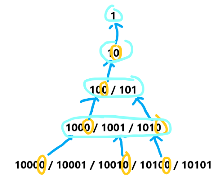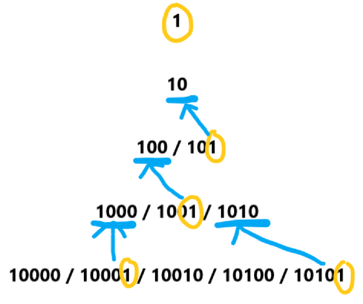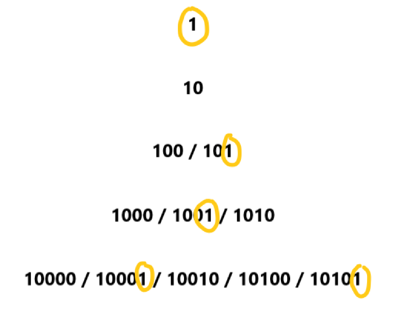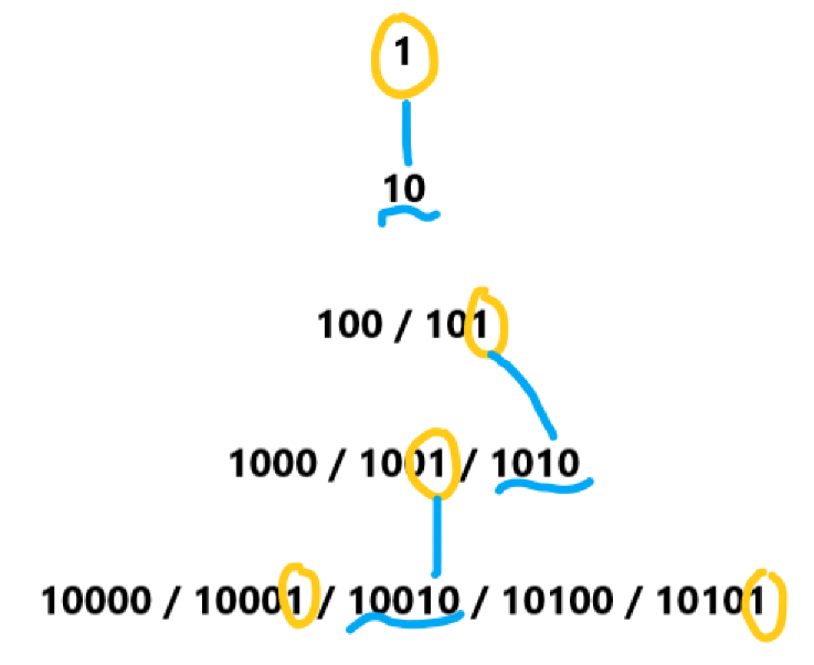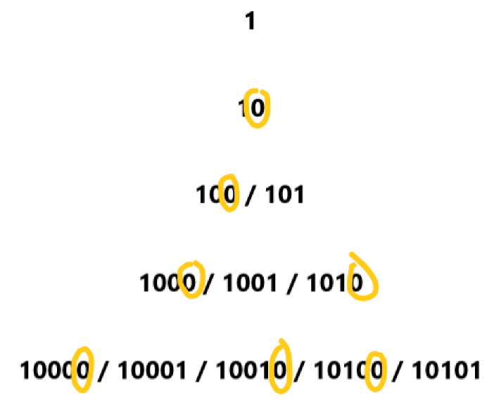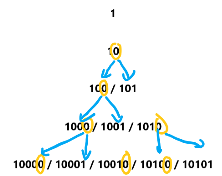맨 뒷자리가 0인 경우엔, 뒤에 0 또는 1 둘 다 붙일 수 있게 된다.