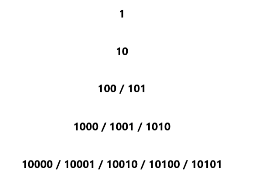 본문에서 나왔듯 11 처럼 1이 겹치는 상황은 나올 수 없기 때문에, 1 (N=1인 경우)에서 10 (N=2인 경우)로 가려면 무조건 뒤에 0을 붙여야 한다.
