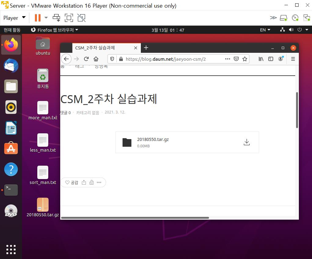💡 2주차에는 리눅스 기본 명령어 중 잘 모르는 3개를 선정하여 각각의 man페이지를 txt파일로 저장하고 압축하는 실습을 해보았다.