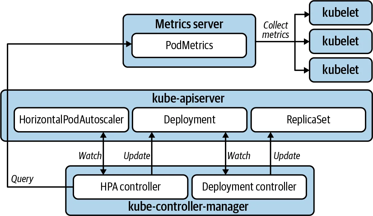 - metrics-server: Kubelet을 통해 수집된 데이터를 API 서버에 등록.