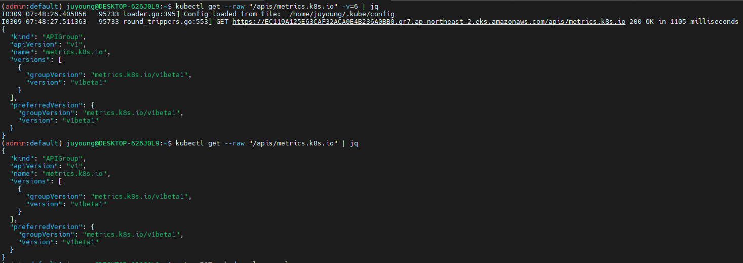 kubectl get --raw "/apis/metrics.k8s.io" -v=6 | jq