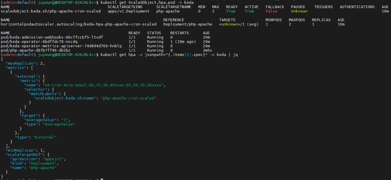 kubectl get hpa -o jsonpath="{.items[0].spec}" -n keda | jq