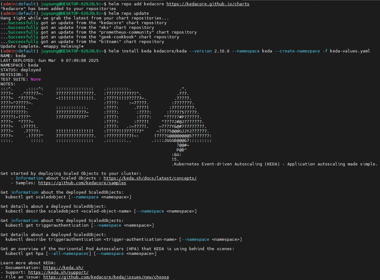 KEDA는 Helm을 이용하여 간편하게 설치할 수 있습니다.