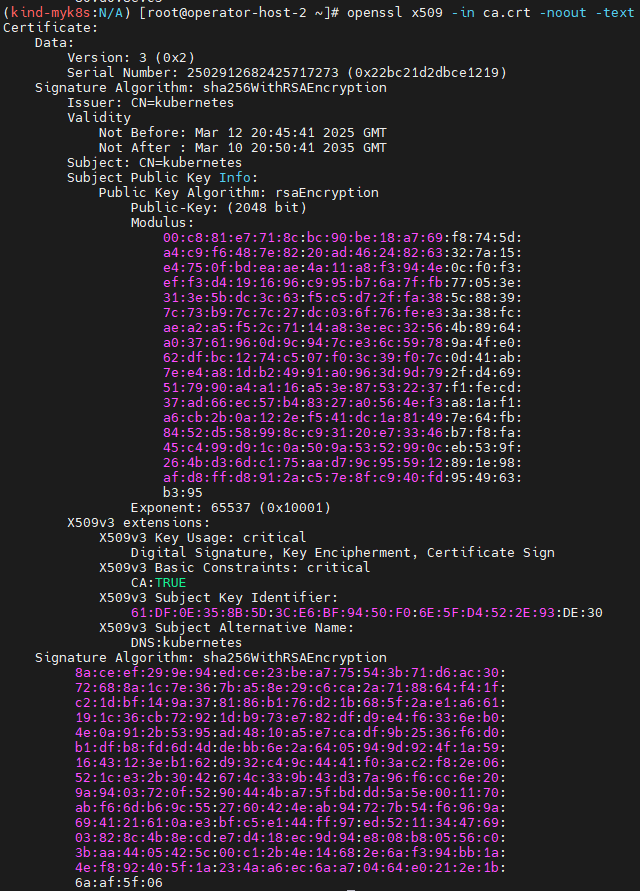 docker exec -it myk8s-control-plane openssl x509 -in /etc/kubernetes/pki/ca.crt -noout -text