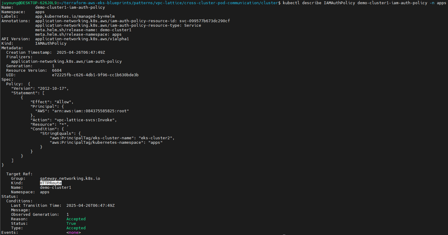 네임스페이스에서 온 요청에만 부여됨kubectl describe IAMAuthPolicy demo-cluster1-iam-auth-policy -n apps