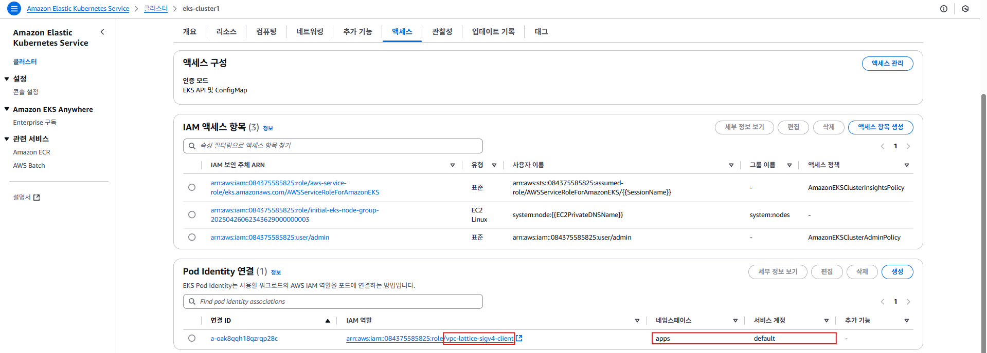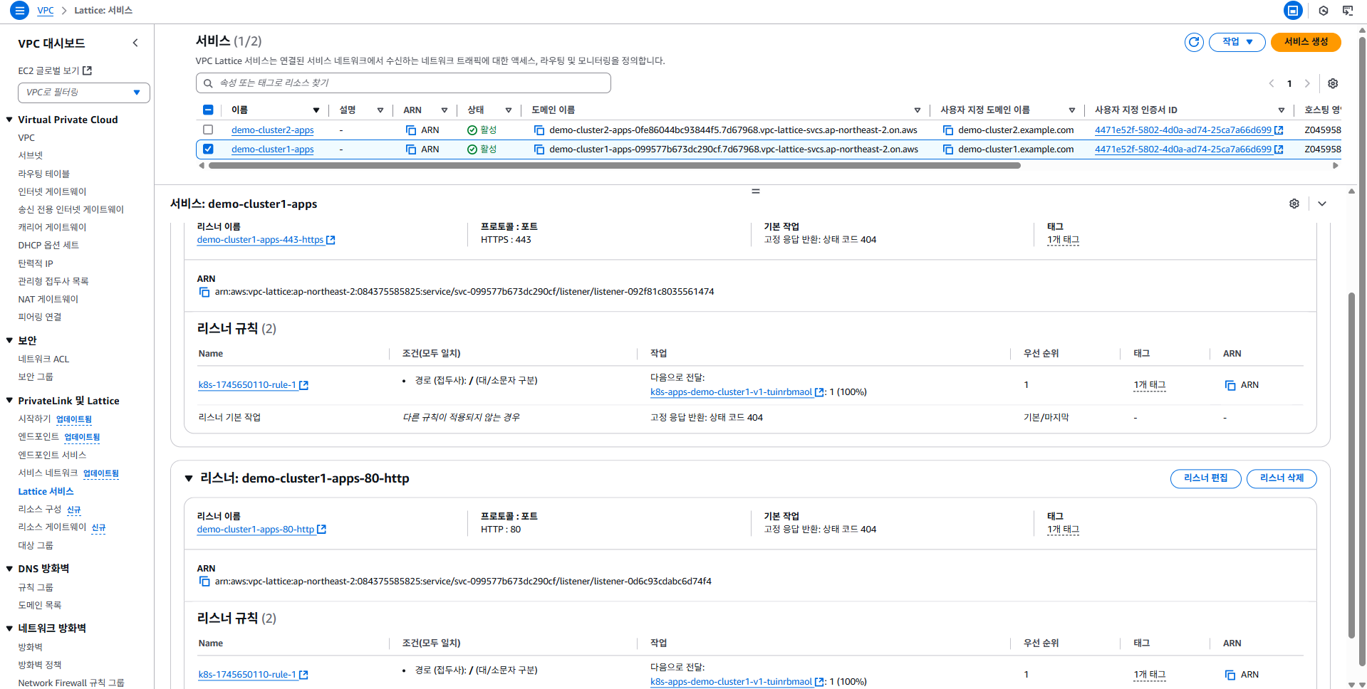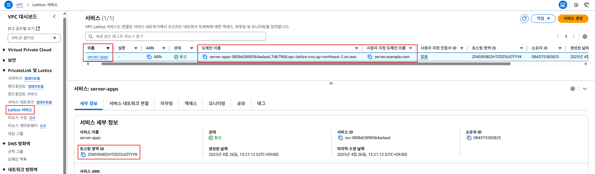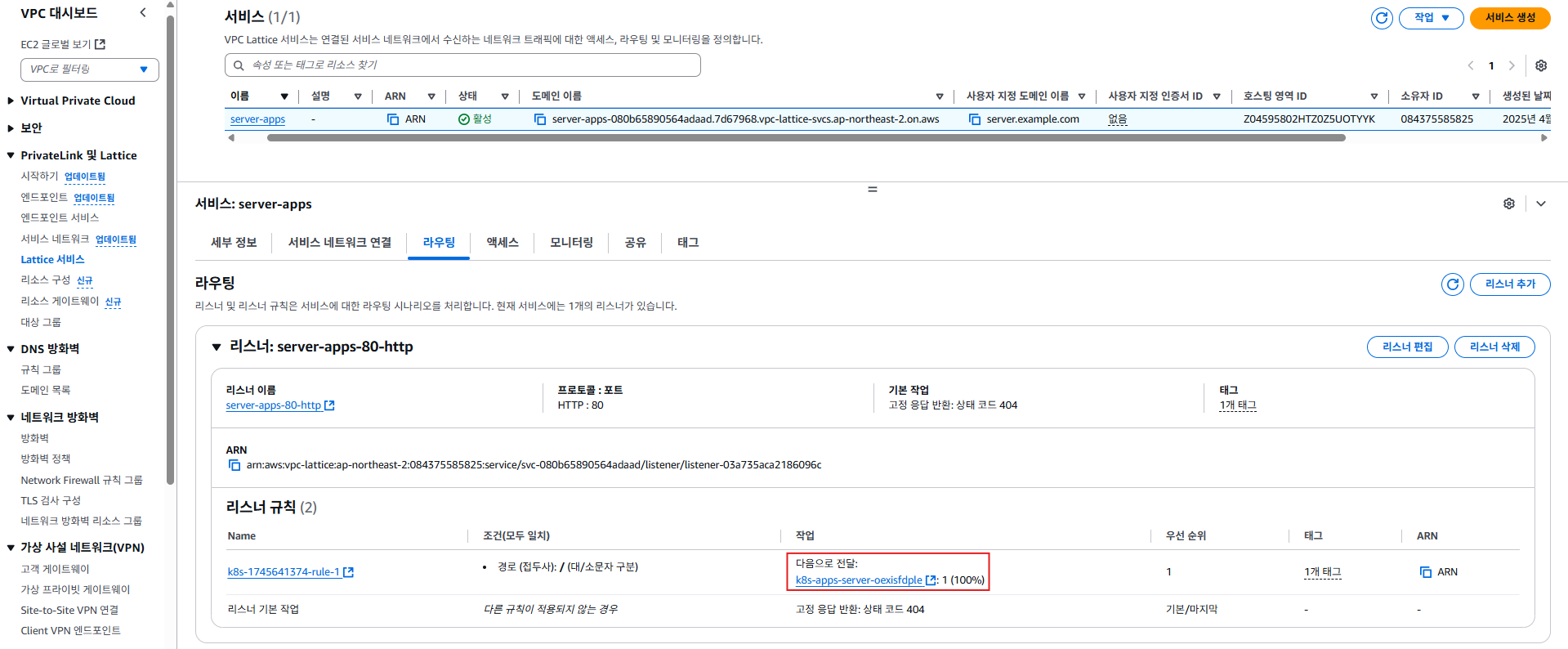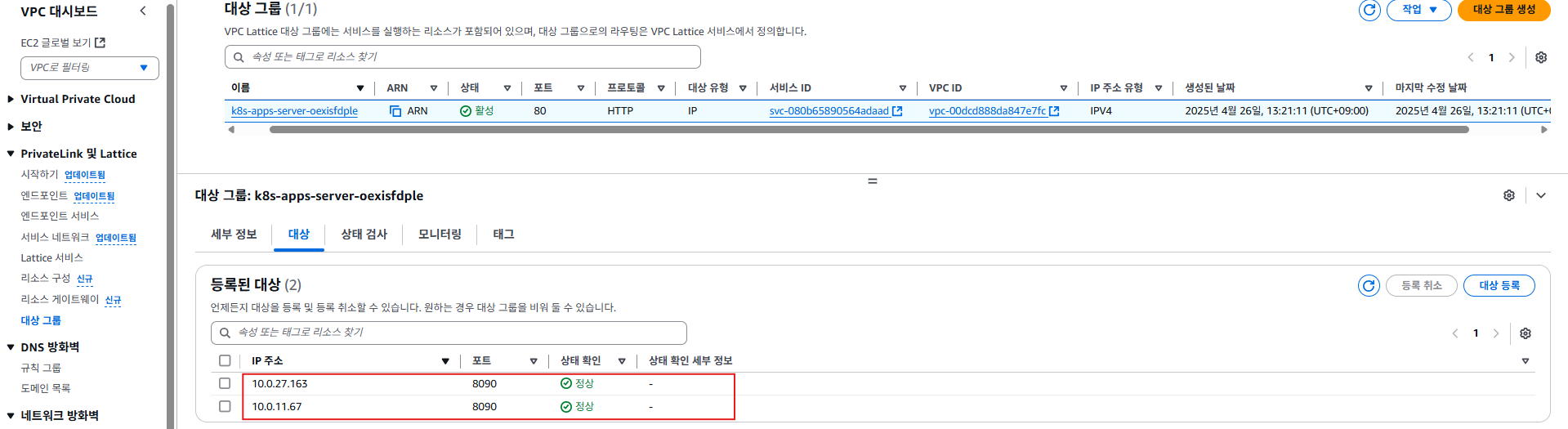 메뉴에서, 실습에서 생성된 VPC Lattice Service를 확인할 수 있습니다.kubectl get po -n apps -o wide