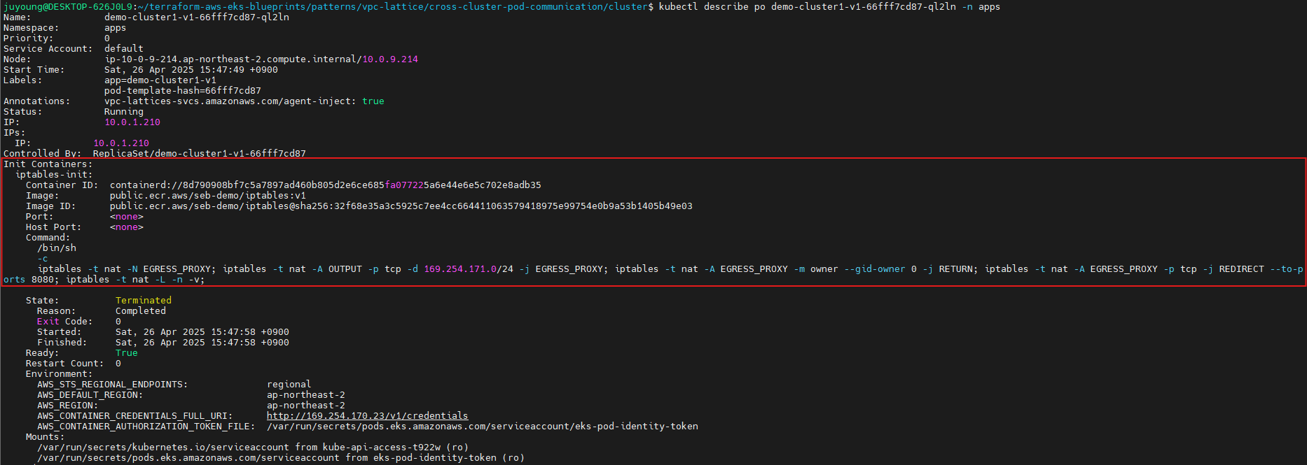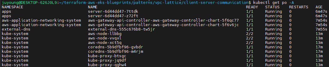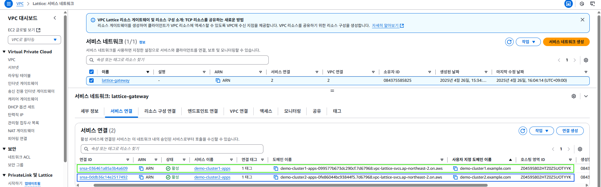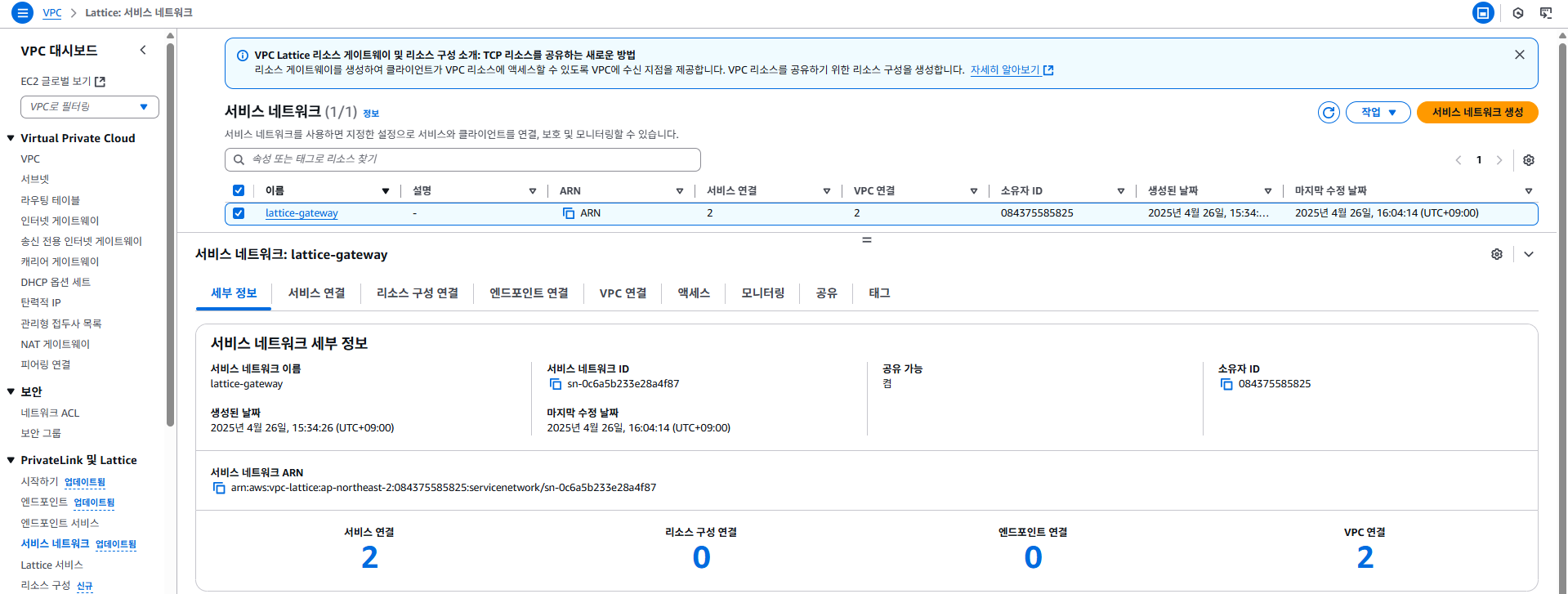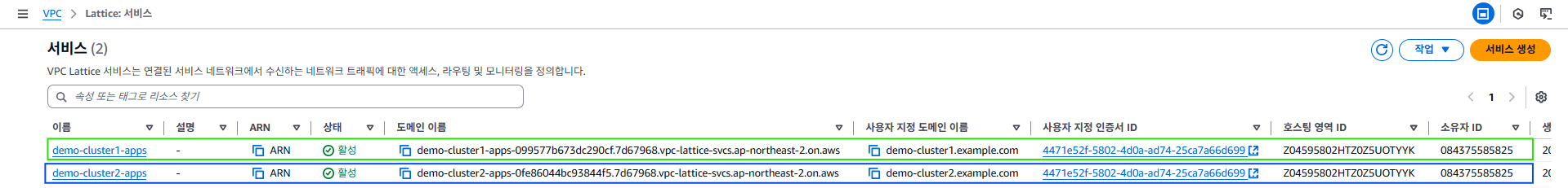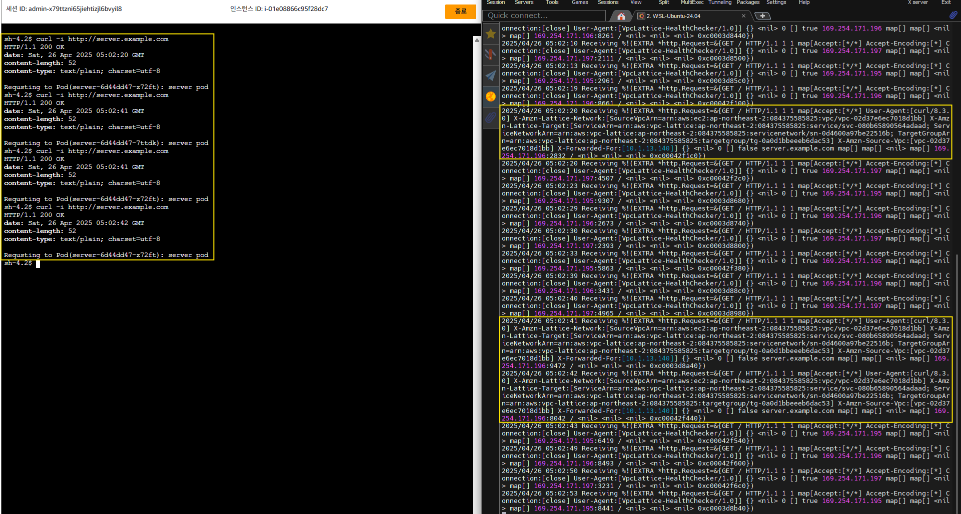 메뉴에서, 실습에서 생성된 VPC Lattice Service를 확인할 수 있습니다.kubectl get po -n apps -o wide