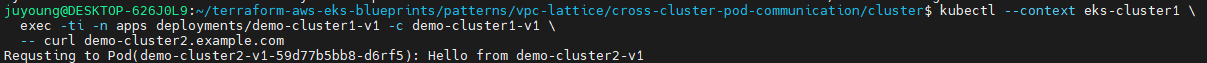Requsting to Pod(demo-cluster2-v1-xxxxxx): Hello from demo-cluster2-v1