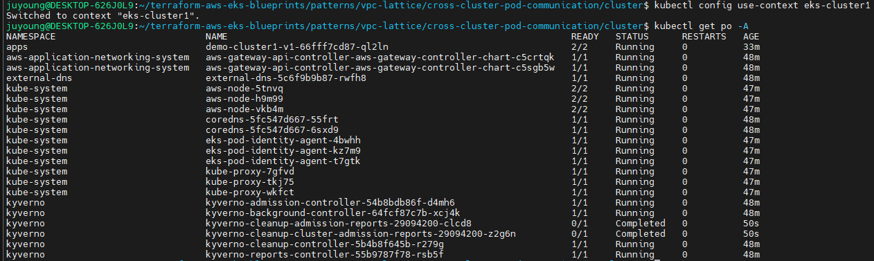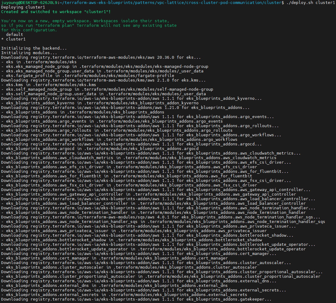 cd /workshop/terraform-aws-eks-blueprints/patterns/vpc-lattice/cross-cluster-pod-communication/cluster/
