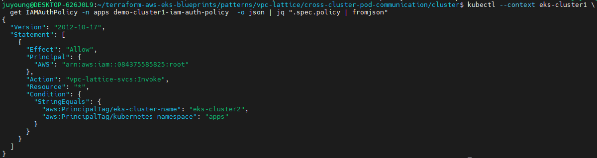 get IAMAuthPolicy -n apps demo-cluster1-iam-auth-policy -o json | jq ".spec.policy | fromjson"