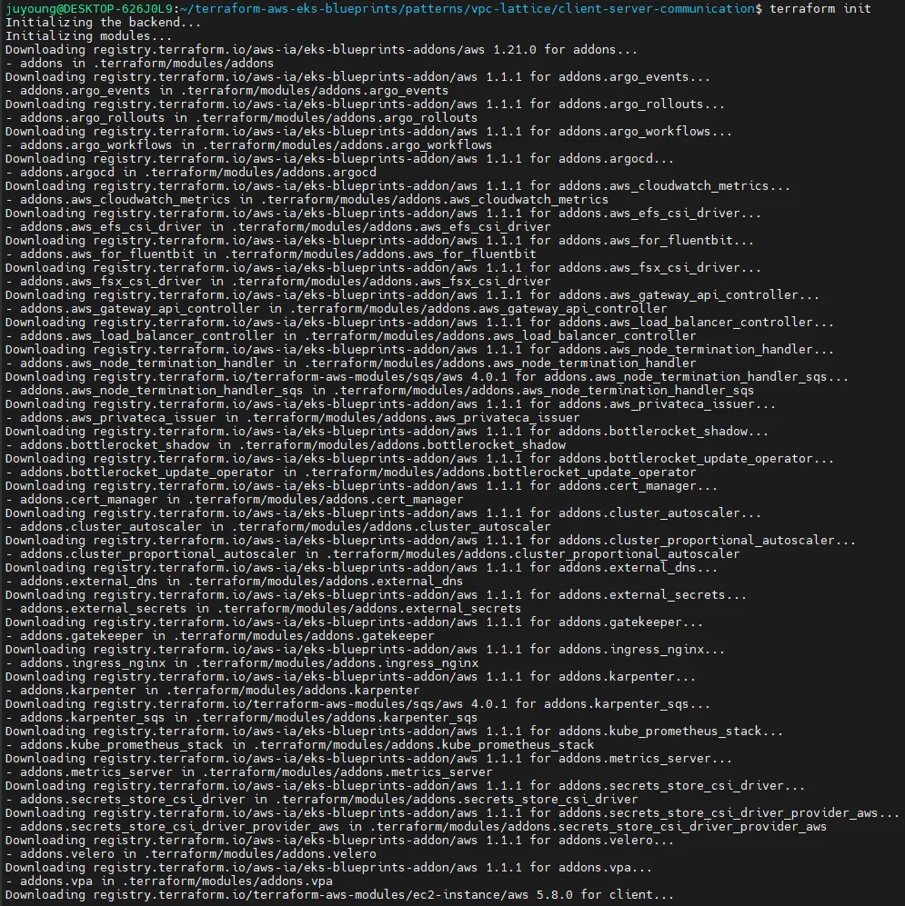 cd terraform-aws-eks-blueprints/patterns/vpc-lattice/client-server-communication